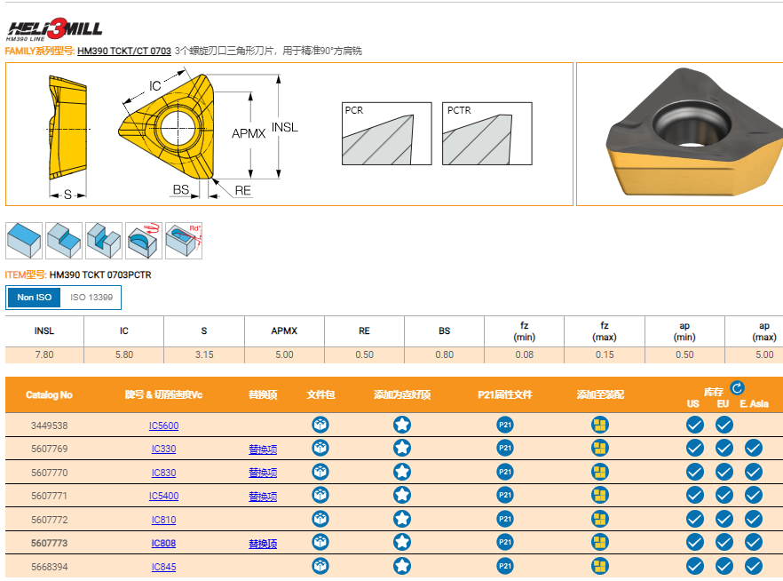 伊斯卡螺旋槽刀片 方肩铣刀粒HM390 TCKT0703PCTR IC808